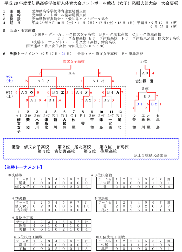 平成28年度 尾張秋季ソフトボール大会(高校女子)