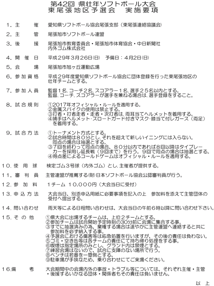平成29年度 全尾張ソフトボール連絡協議会 役員